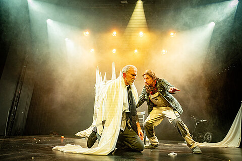 Regie, Produktion: Jakub Gawlik | Schauspiel: Daniel Minetti, Marcus Born | Choreografie und Tanz: Chiara Detscher, Seraphine Detscher | Komposition und Live-Musik: Jens-Karsten Stoll | Dramaturgie: Prof. Andreas Engelmann | Bühnenbild: Alabaster Becher | Bühnenbau: Johannes Schönecker | Licht: Ole Büttner | Bilder: Thomas Türpe | Projektleitung & Outside Eye: Heike Albrecht